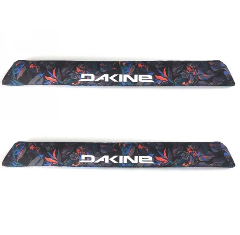 28 inch wide Dakine aero roof bar pads, Tropic Dream design, high density padding. 3.5 inches deep which fits almost all aero style bars. 600d highly durable polyester full length velcro underneath.