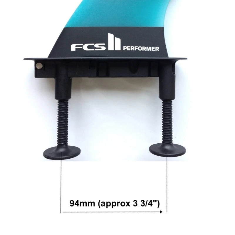 Compatible with most softboard surfboards. Installs like a bodyboard leash plug in a few simple steps (screwdriver required). Fits all FCS original system fins. NOTE: Plug screw holes are at 94mm (approx 3 3/4″) centres. Note that if your current boxes/fins are just flush to the board you may need to remove some slick/foam for these to fit.