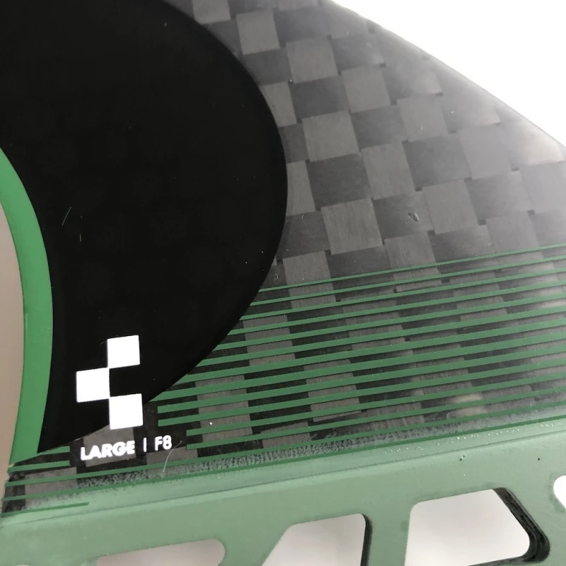 The F8 Blackstix is a large size Speed Generating fin with a Ride Number of 8.7. Featuring a neutral template this is the largest set in the Blackstix lineup. Futures Blackstix fins feature a V2 inside foil that generates and maintains speed throughout turns. The precision carbon and fiberglass matrix construction paired with specialized epoxy resin provides a very lightweight fin with incredible response, making your board feel livelier.