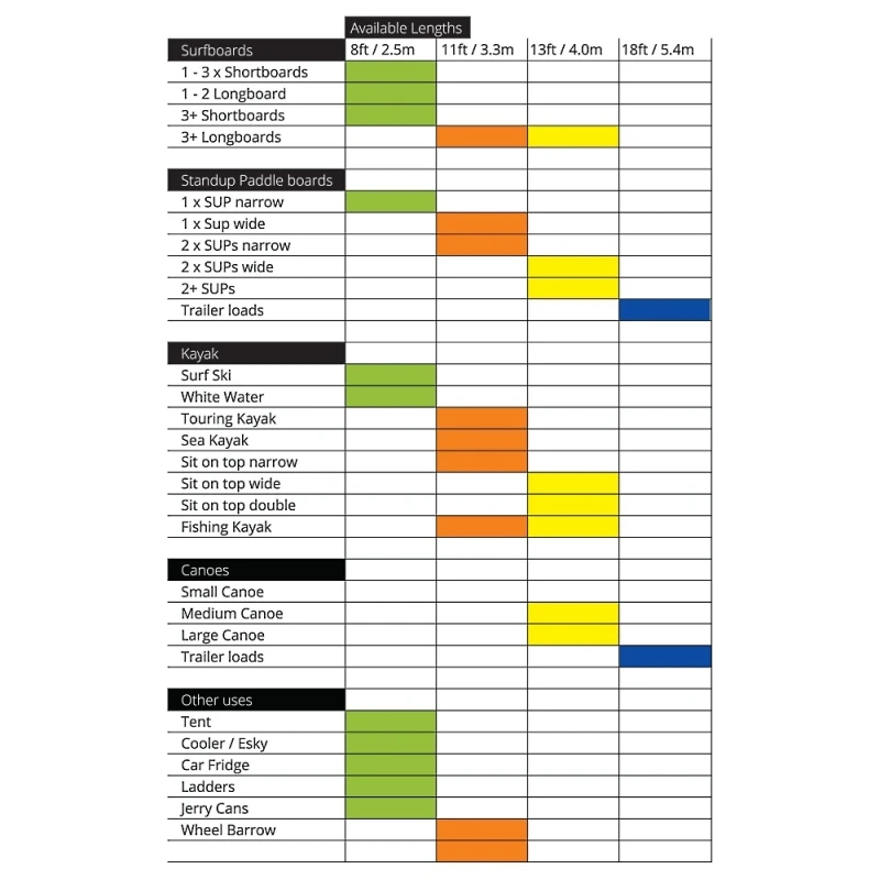 The buckles have a Soft Santoprene protective casing, a Polished die cast buckle, and a Weather resistant lock with dust shutter. It could also be used for securing Racing Ski’s, Rowing sculls, paddle boards, Windsurfers, bikes, luggage, etc etc….