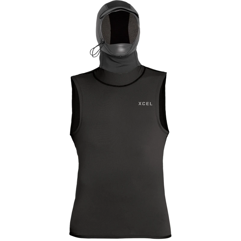 The main body is made from a new techology waffle thermo insulation. oz thermal polypro micro fleece fabric, 4 way stretch for comfort. The 2mm hood is a quality affair. It features Xcel’s new Quickdry lining (recycled fibre) side panels for warmth and comfort.